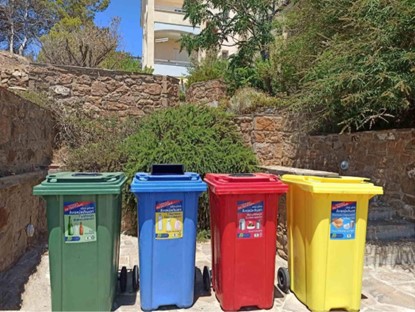 Τόσο στους μπλε μεγάλους κάδους όσο και στους μικρούς χρωματιστούς που είναι τοποθετημένοι στο νησί, ακολουθούμε τις οδηγίες που είναι τοποθετημένες πάνω τους και εφαρμόζουμε “Διαλογή στην Πηγή”. Δηλαδή διαχωρισμό διακριτών κατηγοριών απορριμμάτων στο σημείο της παραγωγής τους με σκοπό τη ξεχωριστή συλλογή και ανακύκλωσή τους.